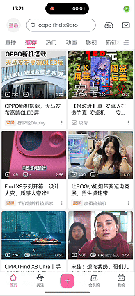 视觉上的流畅效果也非常重要,因为很多不流畅的动画,并不是因为卡顿,而是过于生硬的动画效果造成的。ColorOS 16系统则提供了全场景无缝动画效果,在桌面、负一屏、全局搜索、桌面大图标等场景中,都遵循无缝生长的视觉效果,让应用的开启、关闭和应用内交互都遵循“从哪来、到哪去”的显示逻辑。而关键的是,这种显示逻辑已经拓展到第三方应用了,ColorOS 16已经对小红书、哔哩哔哩、得物、爱奇艺、拼多多、腾讯视频和咸鱼进行了适配,以B站为例,点击站内任意视频,则会在相应位置扩散到全屏,而非传统的右侧推拉式动画,返回时同样是回归原始位置。视觉流畅性与其它手机已经不是一个级别了。
