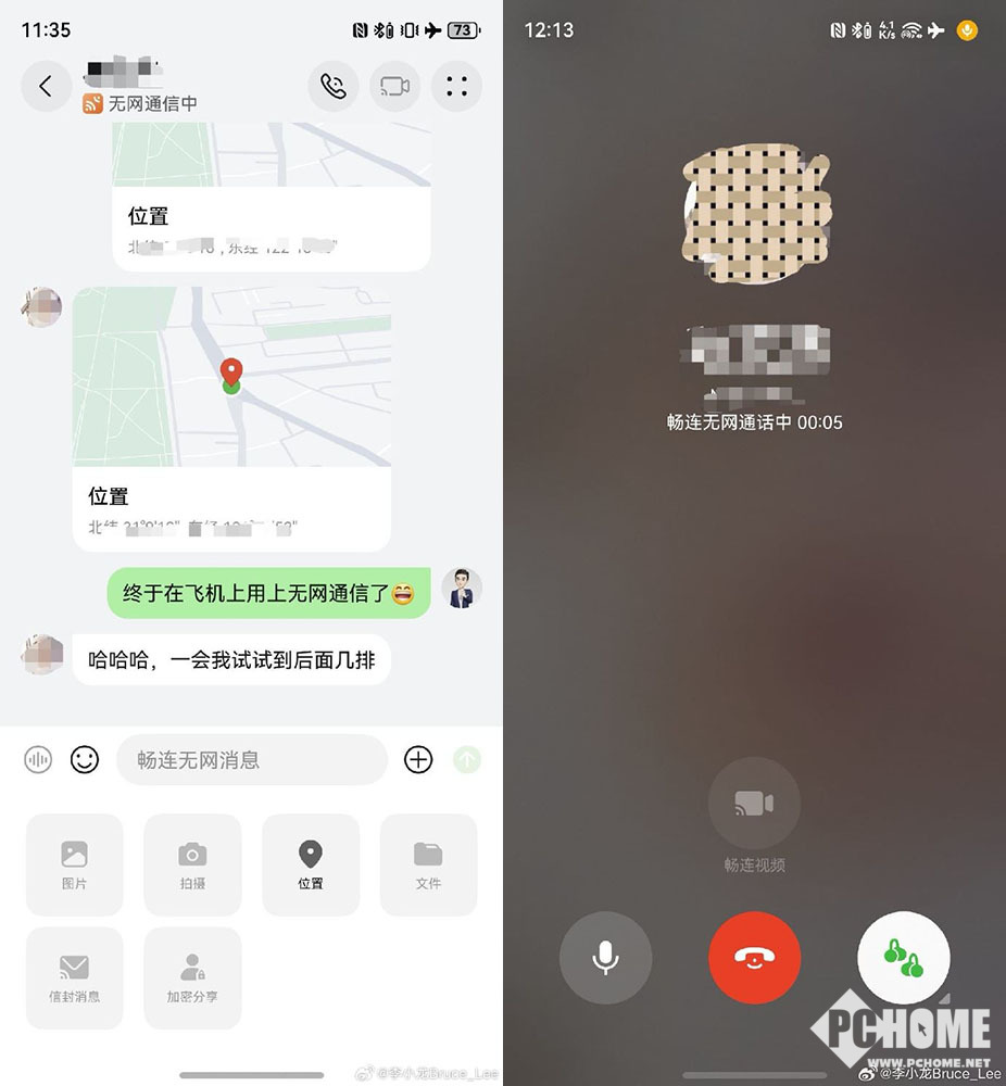 华为张小龙表示:国内运营商地面信号覆盖太好,一直没什么机会用无网通信。今天飞机上和同事试了一下,太好用了,在天上也可以自由的发消息和打电话。