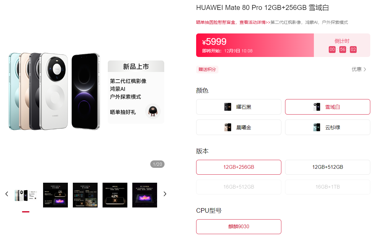 华为Mate 80也不是全面现货发售,12+512和16+512两个版本仍在现货发售,大家随时都能购买,12+256的入门版本则陷入到了缺货情况,该版本具有很高的性价比,售价仅4699元。