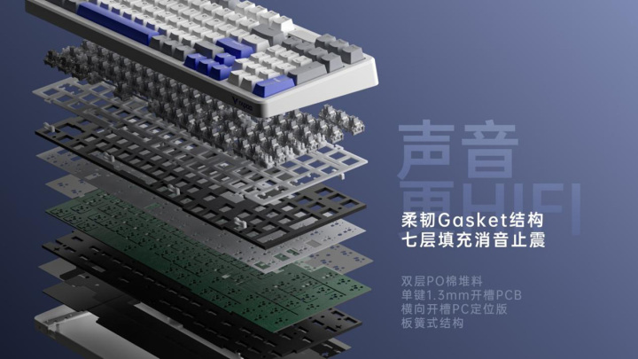 · HIFI手感:7层消音填充+Gasket结构,双层Poron棉,有效减少空腔音,提供一致HIFI音效