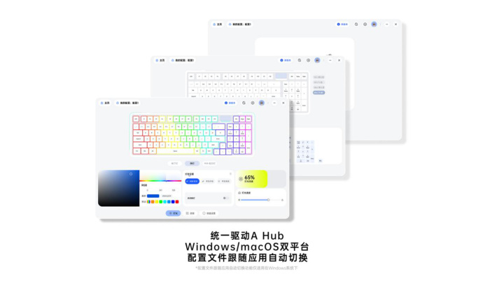基于雷柏电竞生态,硬件性能与软件生态深度融合,将单一设备升级为生态共联协同的战略。V700DIY-98长续航版上线全自研驱动A Hub,兼容Windows/macOS双平台,配置模式跟随应用自动切换,针对不同软件可设置不同配置文件,智能识别自动切换,操作更简单便捷。