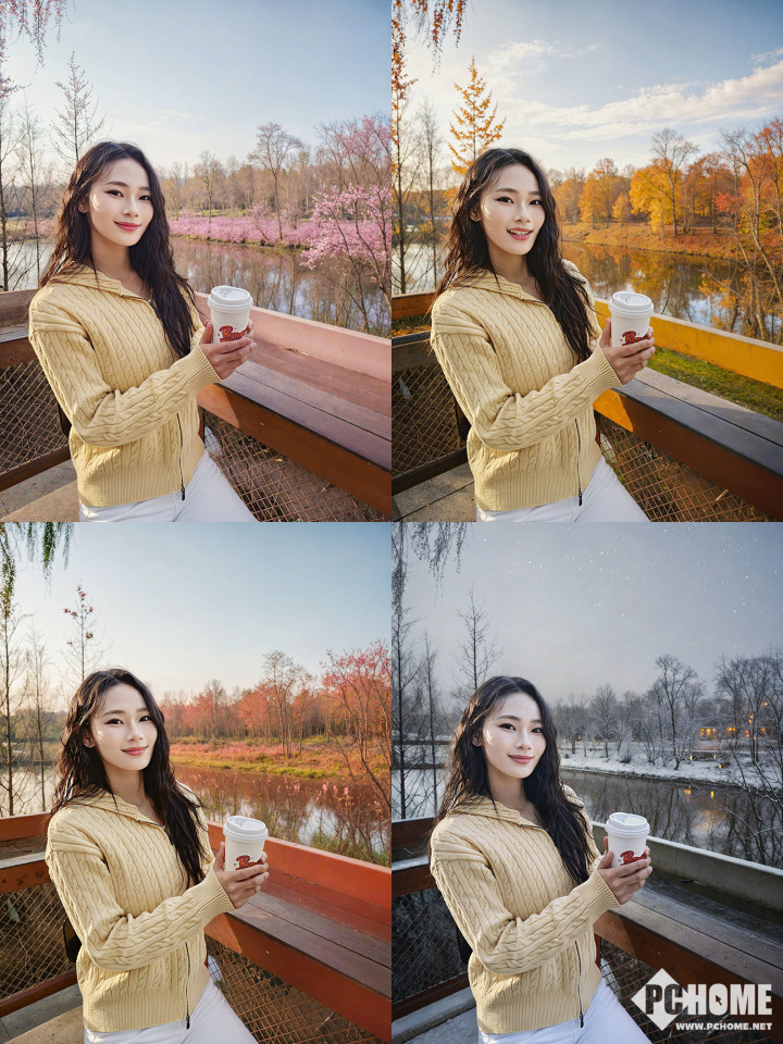 想要拍一些反季节的照片,vivo S50 的AI 四季人像功能可以满足你。无论是冬天拍出绿意盎然的夏日感,还是夏天定格银装素裹的雪景,短短几秒就能生成逼真的四季风格大片。