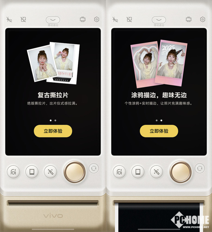 在大家比较看重的复古胶片相机上,vivo S50的一拍得胶片相机,不仅有着贴近相机的拍照接片,让拍照更有仪式感。有着更多自定义元素的相纸模板,则能玩出更多的新花样。