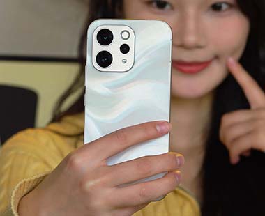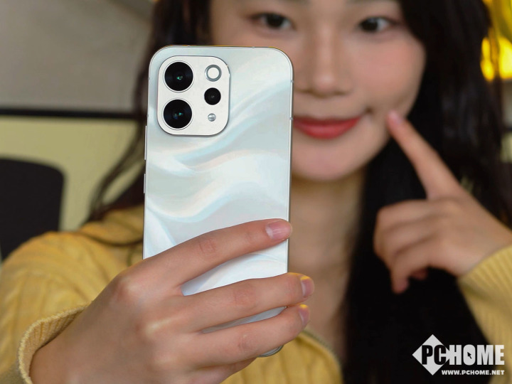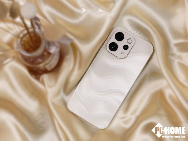 背板选用缎面柔光玻璃材质,通过球面晶体层层堆叠的设计,营造出温润的雾面光泽感,触感丝滑细腻,同时还能有效抵御指纹残留。