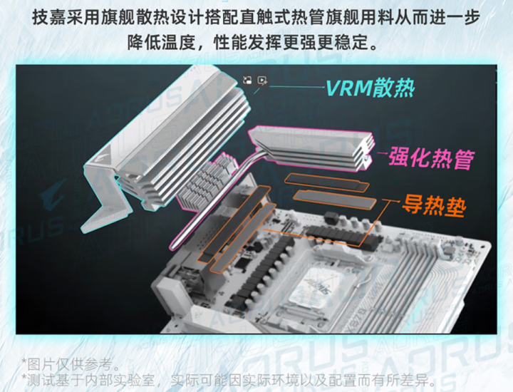 这款主板最大的亮点则是针对锐龙 9 9900X3D处理器高功耗、高发热的特性,量身打造的X3D Turbo Mode 2.0鸡血模式。机身整体通过内置散热风扇、全覆盖一体式散热背板,搭配直触式热管与旗舰级用料,能够快速导出处理器与供电模块的热量,以此达到长期高负载稳定运行的效果,让X3D技术的性能优势全程拉满。