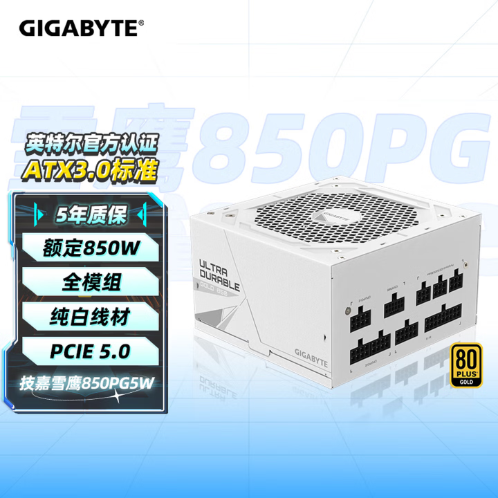 而套装中搭配的850W雪鹰金牌电源,通过80PLUS金牌认证,转换效率高达90%,内部采用高品质日系电容,能提供稳定的电流。850W的额定功率,不仅能完美匹配RTX 5070Ti的供电需求,还能持续保障未来可能的硬件升级,甚至还能在显卡超频等场景下,提供稳定的供电,保障性能持续、稳定的输出。
