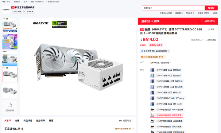 ·显卡+电源套装:RTX 5070Ti AERO OC 16G+850W雪鹰金牌电源套装