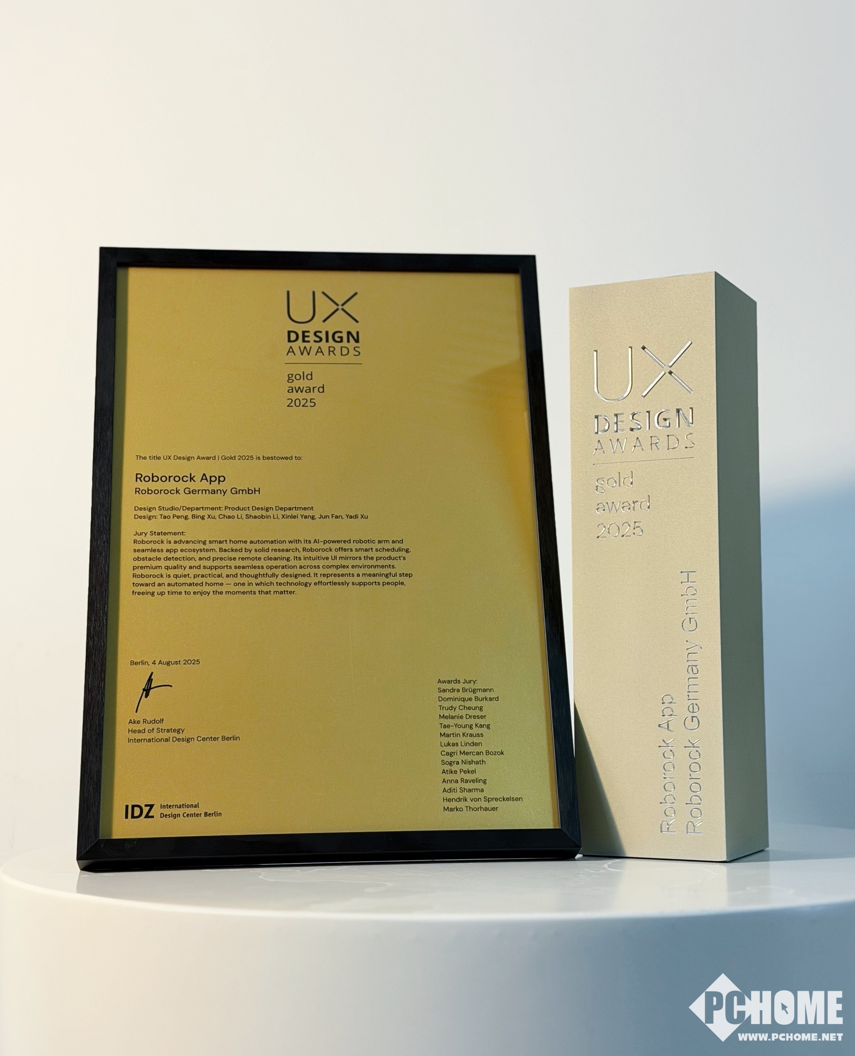 近日,全球权威设计奖项——2025年德国UX设计奖(UX Design Awards)获奖名单公布,石头科技旗下Roborock App凭借卓越的用户体验设计与创新技术融合,荣获德国UX设计奖金奖。