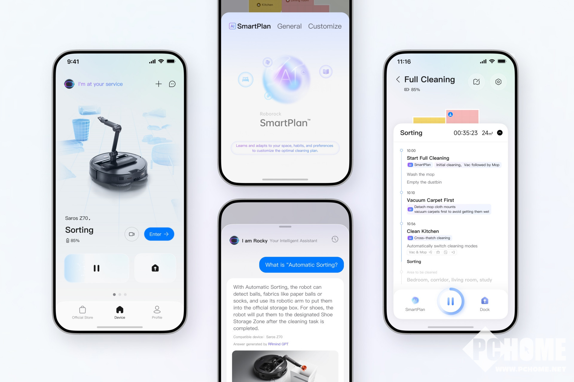 Roborock App 用户遍布全球近 200 个国家和地区,月活使用量超 1000 万用户。App 3.0 融合AI环境感知与AR实景建模(Matrix地图),可自动生成全屋清洁方案,并支持视频巡航、一键寻宠等场景化功能。面对技术创新可能带来的操作复杂性,坚持以“简洁科技”的设计语言降低认知门槛,通过清晰的图形界面、个性化主题及色弱友好设计等人性化细节,让前沿技术变得易用且包容。