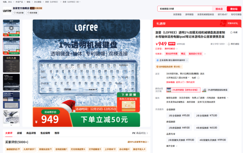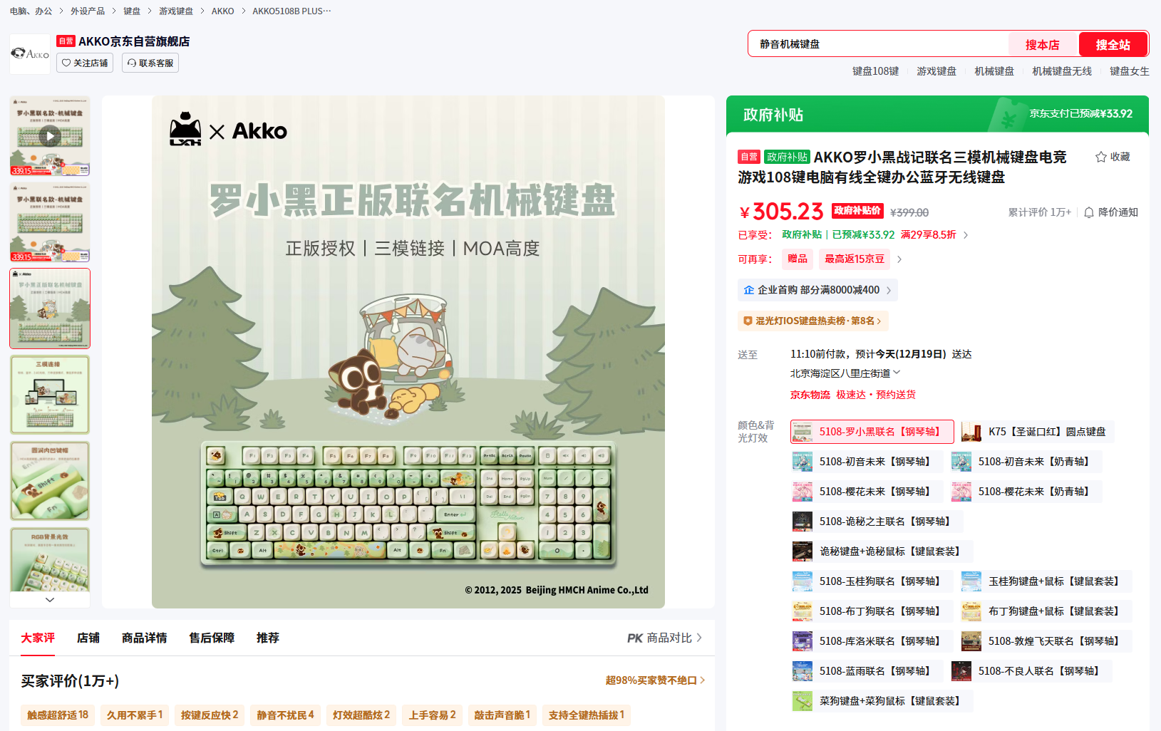 目前电商平台正值圣诞礼遇季,正是你购物焕新的好时机,四款键盘各有所长,无论你是喜欢IP联名、追求高性价比的二次元党,还是尤其注重桌面美学、办公氛围的颜值党;无论是喜欢惊险刺激的竞技赛场、追求极致操作的游戏玩家;还是钟情客制化、信赖海外老厂品质的资深用户,都能在此找到属于你的键盘选择。
