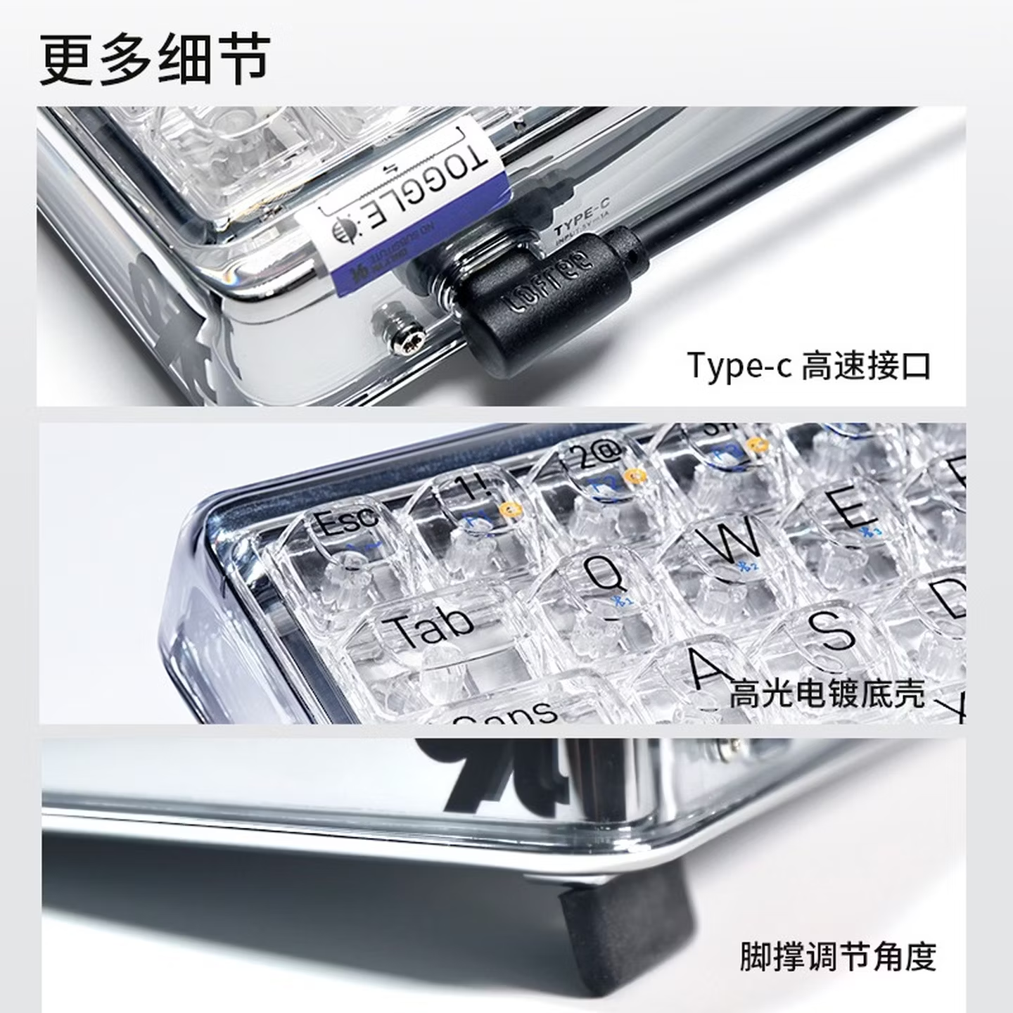 ·超高颜值担当:洛斐透明1%双模无线机械键盘