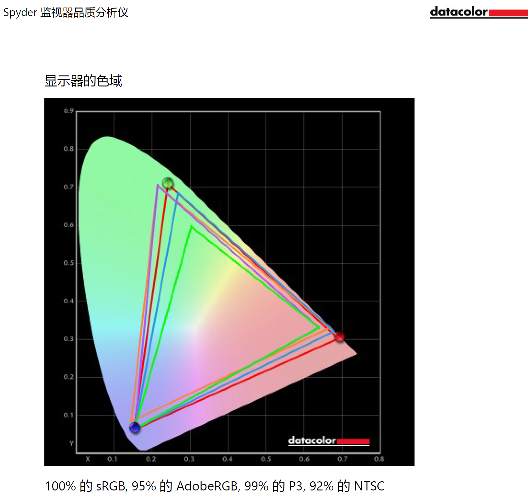 色域覆盖方面,它拥有100% sRGB色域、95% AdobeRGB色域、92% NTSC色域以及99% P3色域,已经达到专业显示器的水准。