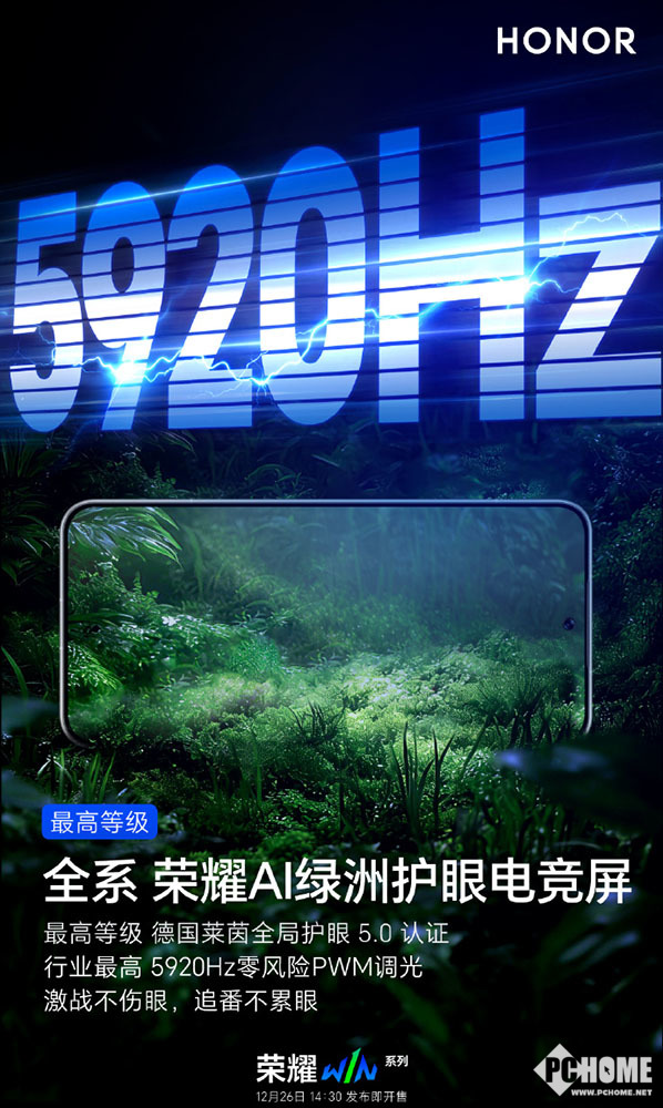 即将在12月26日发布的荣耀WIN系列新机,有着出色的性能表现,十分适合电竞游戏。在出色的电竞体验之外,荣耀WIN系列在护眼方面也支持全面,全系标配AI绿洲护眼电竞屏,游戏护眼两不误。
