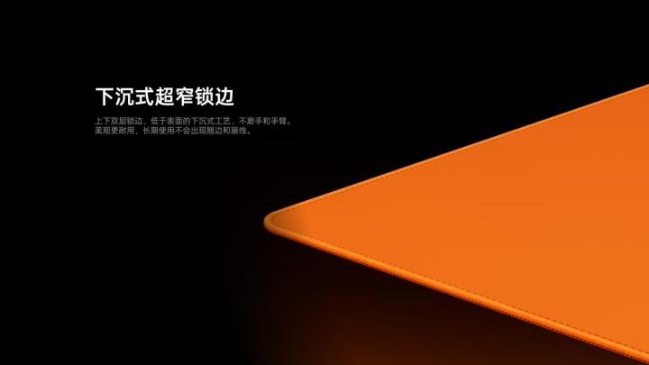 边缘上下双层锁边,锁边高度低于布面表面,形成独特 “下沉式” 结构。拉枪微操时,手腕与手臂不会与锁边产生摩擦,长期使用不磨手、不硌臂,显著提升舒适度,解决传统锁边 “磨手” 的体验短板,兼顾美观与耐用性。420mm x 490mm 的黄金尺寸设计,也能同时满足手臂流和手腕流,不多占据桌面空间。自信鲜艳不张扬,电竞色彩重新定义。