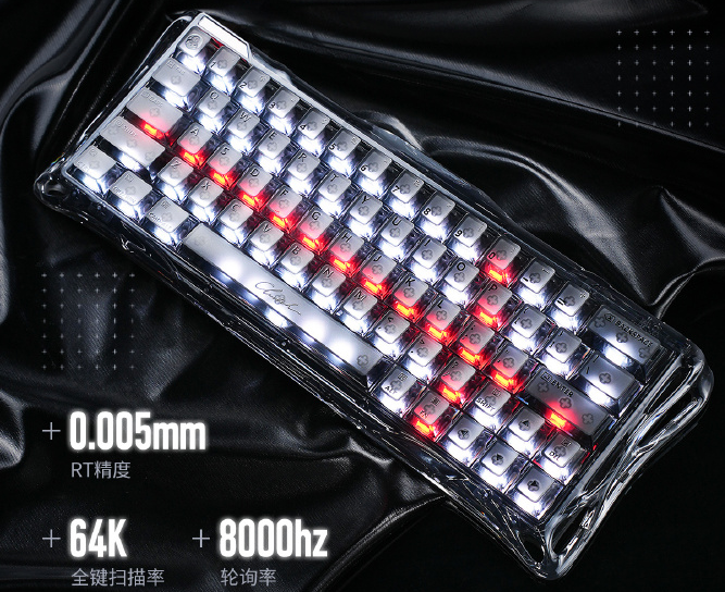 而实用性方面整体采用无Fn区60%紧凑布局,右Shift键切分独立方向键,兼顾小尺寸与操作便利性。网页驱动免安装,可自定义RGB灯效、宏设置及固件更新。8000Hz回报率、0.125ms超低延迟、64K全键扫描率。独立板载切换开关,预设游戏模式,并支持手柄映射功能。