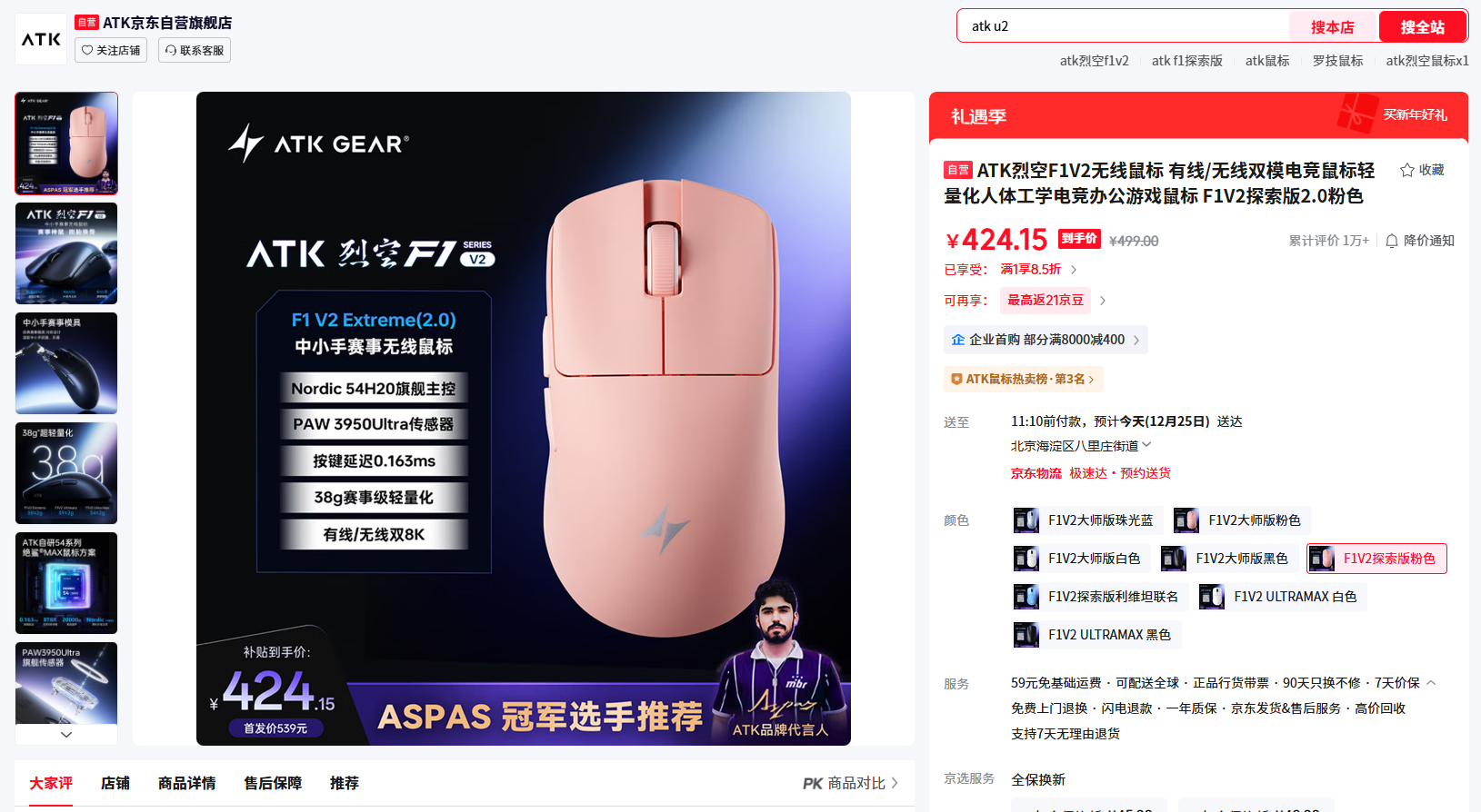 ATK烈空F1V2探索版2.0是目前40g重量级别性能最强的游戏鼠标之一,也是本篇文章四款鼠标里性能最强的一款产品,特别适合追求极致轻量化、极致性能,但是对续航没有要求的硬核玩家。