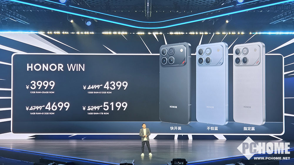 荣耀WIN系列提供荣耀WIN和荣耀WIN RT两款机型,荣耀WIN提供四种存储版本,12GB+256GB版本售价3999元,12GB+512GB版售价4499元,16GB+512GB版本售价4799元,16GB+1TB版本售价5299元,首销期除了12+256版本,全部再优惠100元。