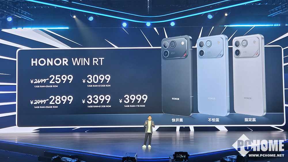 荣耀WIN RT提供五种存储版本,12GB+256GB版本售价2699元,首销期2599元;16GB+256GB版本售价2999元,首销期售价2899元。12GB+512GB售价3099元,16GB+512GB版本售价3399元,16GB+1TB版本售价3999元。
