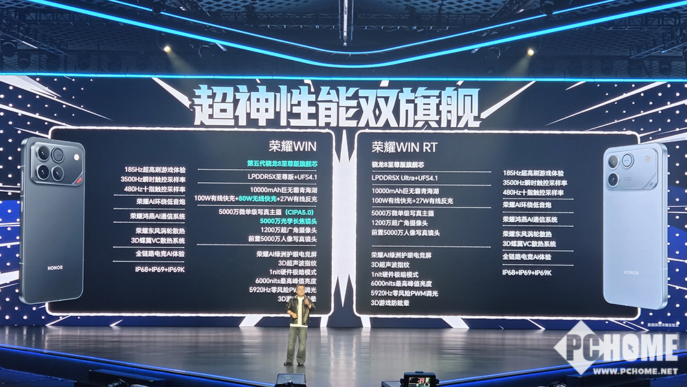 荣耀WIN RT与荣耀WIN相比,主要有三点区别,在处理上使用骁龙8至尊版,在如今依旧十分能打。不提供无线充电功能,没有配备长焦镜头。但在存储成本暴涨的手机市场,会更具性价比。