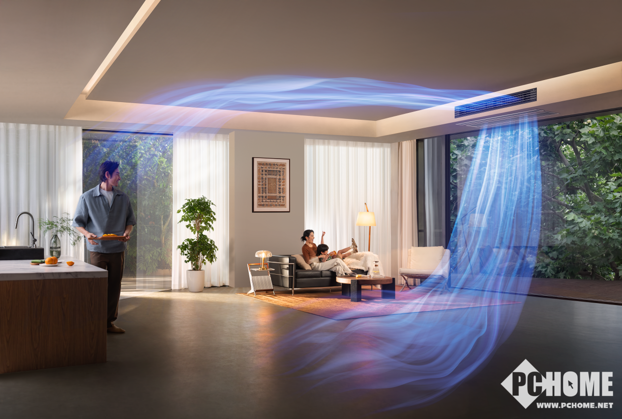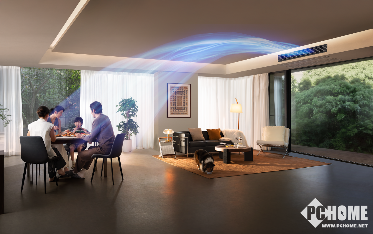 围绕家庭对空气品质的更高要求,米家中央空调Pro 双风轮还引入了空气管理面板,可实时感知室内空气状态,并与家中空气净化器、加湿器、新风等设备联动,实现温度、洁净度与湿度的协同调节,从单一空调设备升级为全屋空气管理中枢。