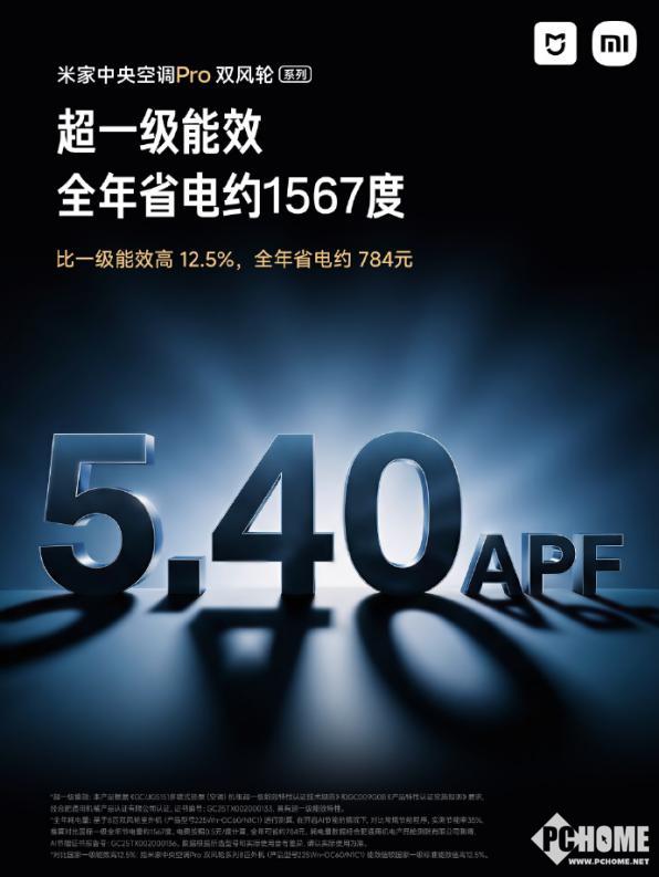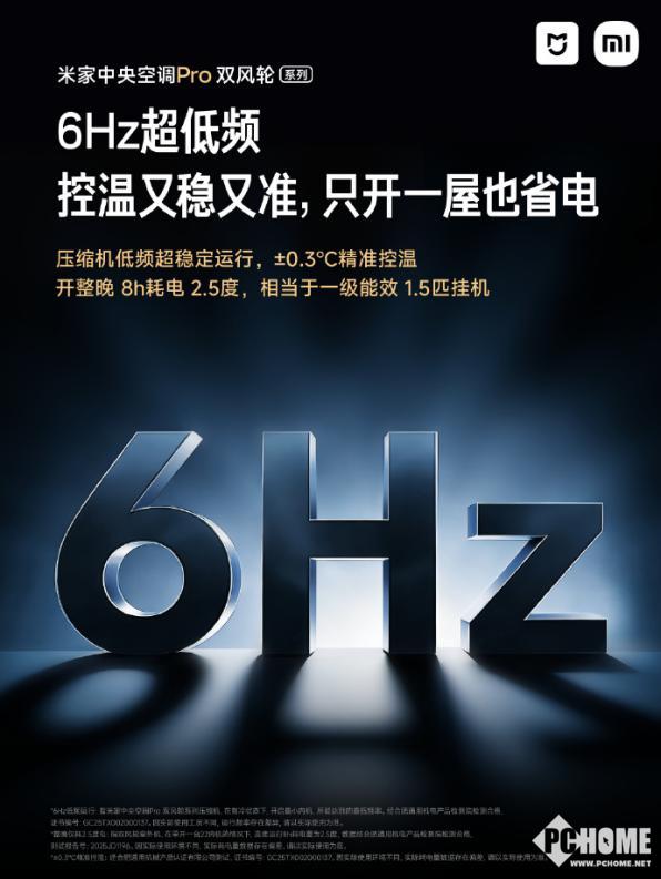 在能效方面,米家中央空调Pro 双风轮达到同档领先的超一级能效,其中 8 匹机型APF值可达 5.4。官方数据显示,全年可节省用电 1567 度。同时小米自主研发 6Hz 超低频技术,在低负荷场景下依然保持稳定输出,减少频繁启停带来的能耗与噪音,让夜间使用更加省电、安静。