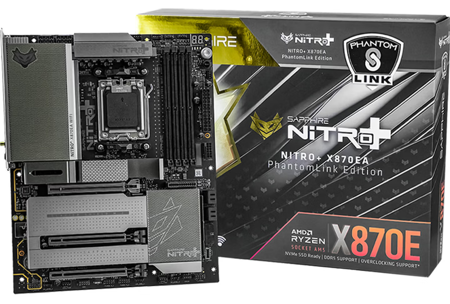 蓝宝石今日正式推出了NITRO+氮动 X870EA PhantomLink主板。该型号在标准正插主板中首次配备GC-HPWR显卡背插供电金手指,也是蓝宝科技的首款X870E产品。其氮动标准版与氮动极光特别版同步上市。