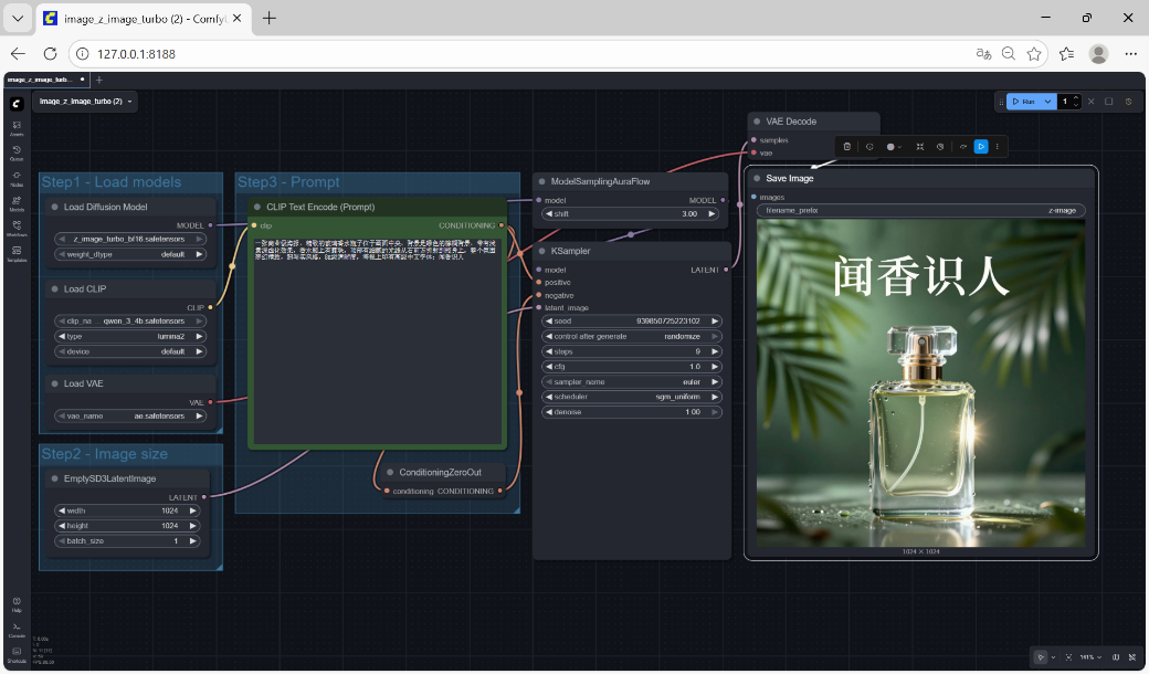 另外就是Z-Image-Turbo在较低采样步数下即可生成结构完整、细节清晰的图像,相较传统SDXL模型,显存占用更低,更适合非高端GPU上运行。同时ComfyUI原生支持Z-Image-Turbo的节点化流程部署,因此,这个模型非常适合跑在本地。