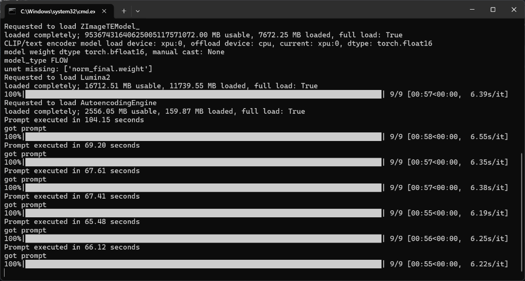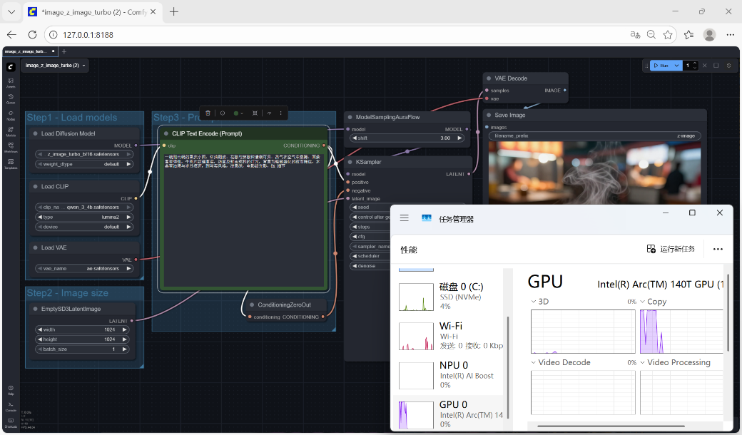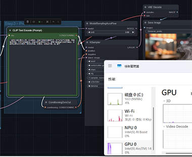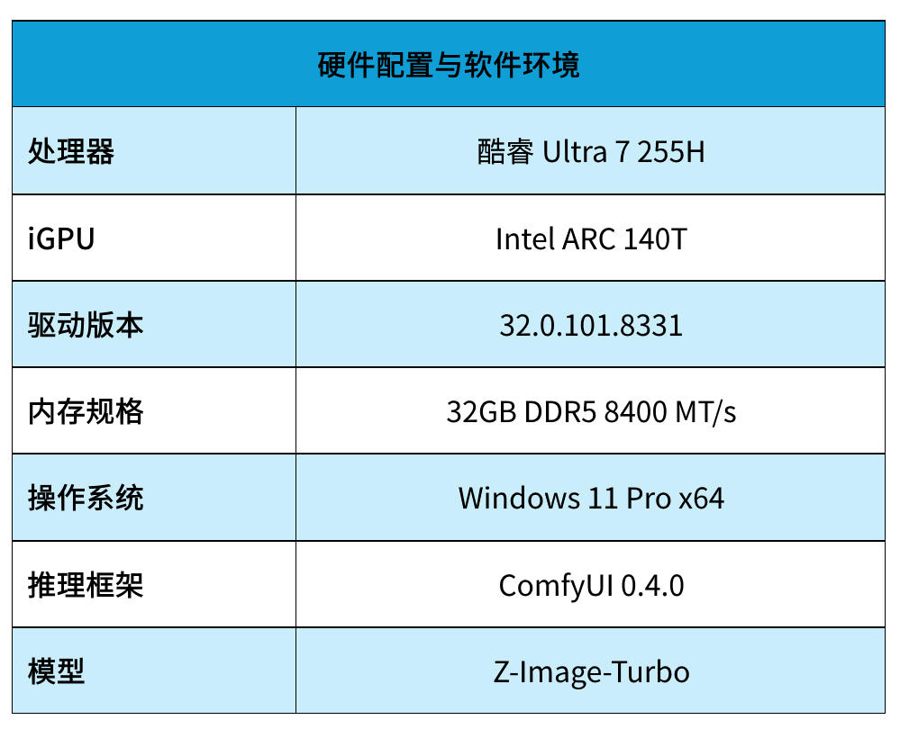 从结果来看,Intel VRAM可变显存技术,是本次成功运行Z-Image-Turbo的关键因素之一。从此,集成显卡不再受限于预设显存大小,而是可根据负载动态申请系统内存。使得原本需要8GB甚至更高显存的模型,能够在iGPU环境中顺利运行,同时也降低了推理过程中的显存抖动。