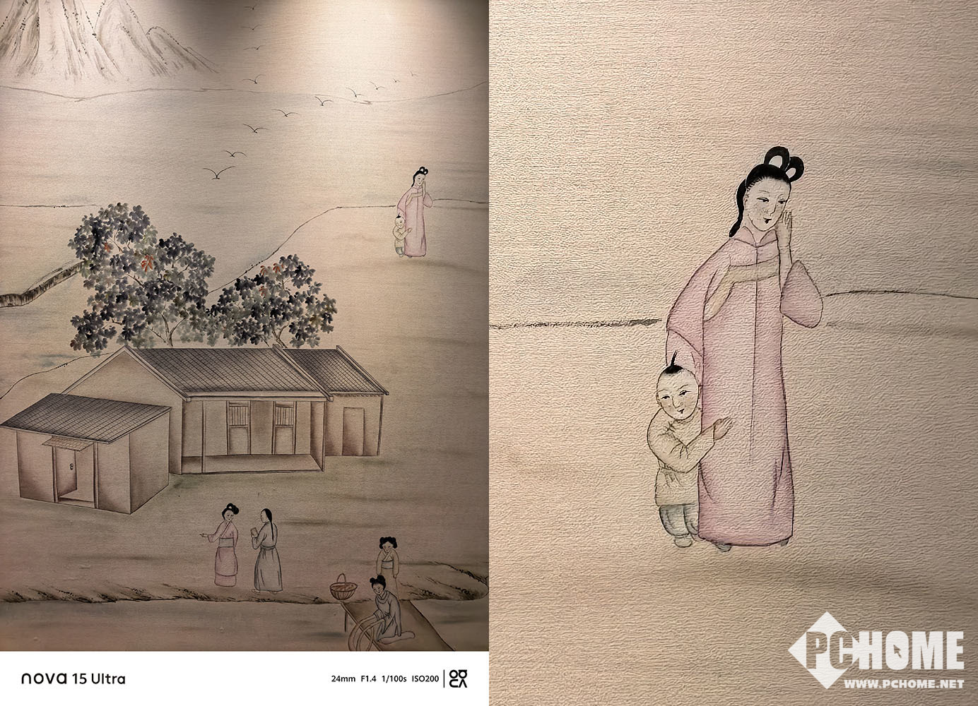所有镜头拍摄的照片均具备超高清晰度,放大后细节保留完整。例如样张中的图画放大后,人物衣褶纹理、面部神态细节,甚至纸张本身的褶皱都清晰呈现。这意味着用户拍摄时可通过镜头接力灵活构图,后期也能随意裁剪调整,创作自由度极高。