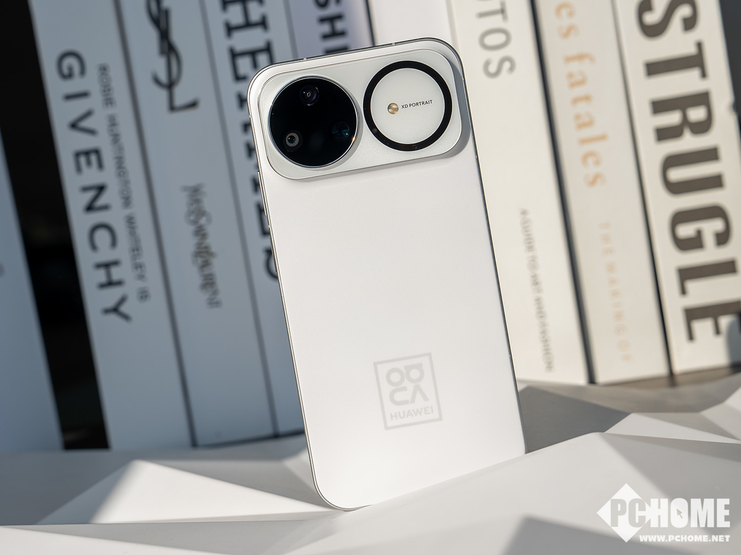 其辨识度的核心,无疑是横置大矩阵镜头Deco+对称星耀环设计。大镜头矩阵虽为当下手机市场主流设计,但相较于其他机型的千篇一律,华为在此实现了创新突破。两颗圆环造型宛如一双明眸,令人印象深刻。左侧超能影像星环与右侧红枫原色影像星环形成对称视觉效果,进一步拉满辨识度。