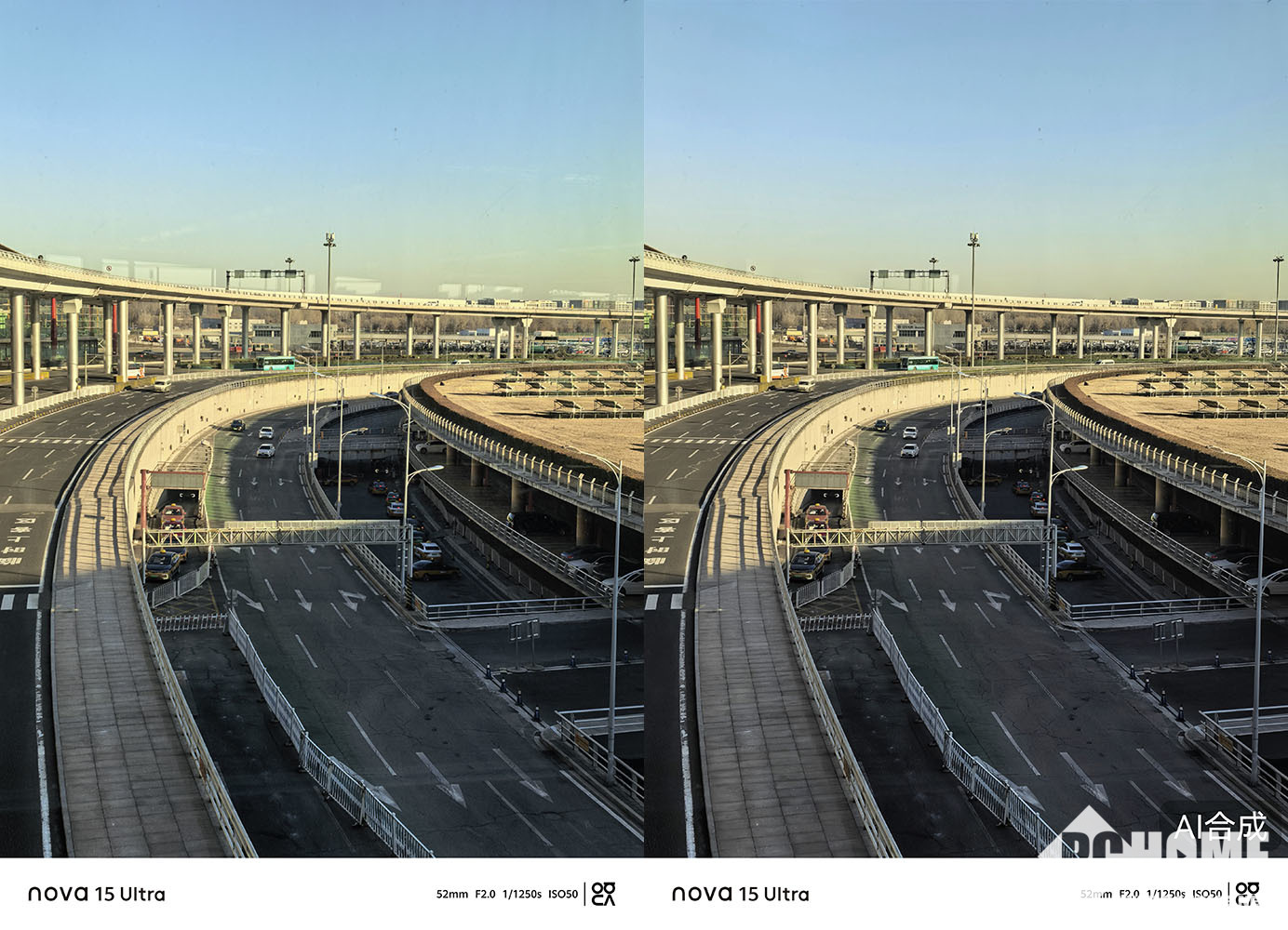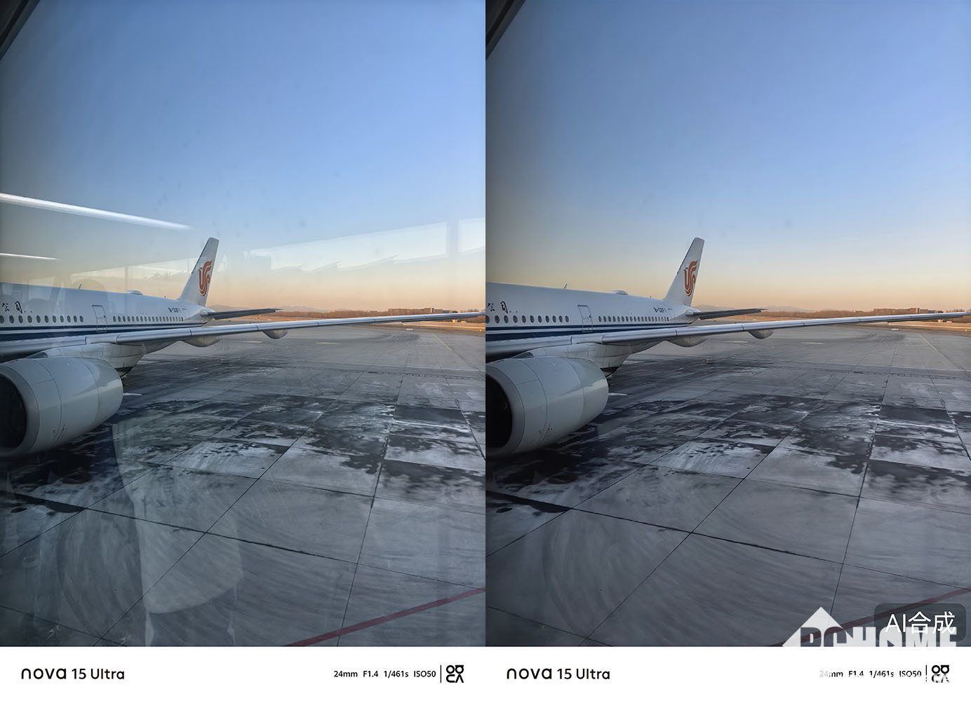 当然,手机实现随手出片,不仅需要优质镜头与算法支撑,还需要用户掌握合理构图技巧,同时具备后期修图能力。这一点对华为nova 15 Ultra而言毫无压力——该机搭载AI辅助构图功能,可根据取景框内画面,为用户推荐合理构图方案。用户只需将“准星”对准系统提示点,按下快门即可完成拍摄。修图功能则能进一步提升画面表现力,还可清除画面中的无关杂物。前文部分照片便是在机场外通过辅助构图拍摄,因隔着玻璃存在强烈反光,经AI修图功能处理后,画面焕然一新。