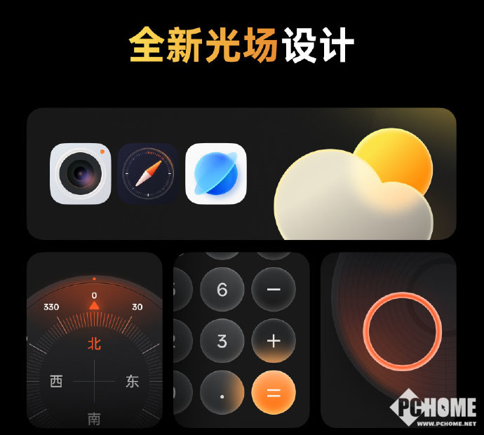 ColorOS 16系统提供了更丰富的光影特效,各种图标更注重光的呈现,通过光边、光晕、阴影效果,使之符合真实情况的美感。计算器、锁屏键盘、拨号盘等按钮,在按下数字按钮时,也会有专门的光效进行提醒,而且按键亮起的同时,还会照亮与之相邻的按钮边缘,非常符合物理常识。