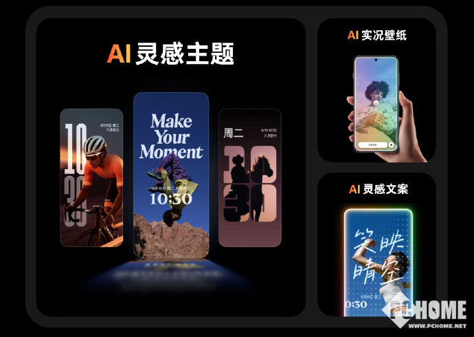 AI灵感主题提供了更丰富的定制化主题,在锁屏界面中,ColorOS 16提供了多种新的锁屏样式,可以搭配上我们自己拍的照片、实况照片或者视频,即可组成个性化锁屏。锁屏界面开创了实况动态景深效果,可以让动态的内容与背景分离,更突出主角。