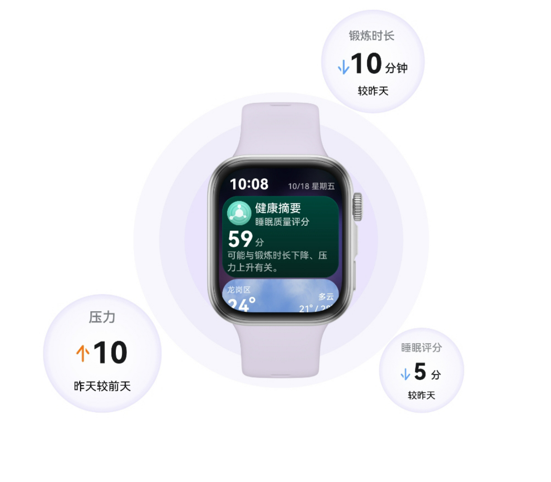 健康方面,华为WATCH FIT 4系列也足以满足用户的需求。华为WATCH FIT 4 Pro搭载玄玑感知系统,支持ECG功能,7*24小时全天候监测身心健康。华为WATCH FIT 4系列全系支持心率、血氧、睡眠健康、情绪健康、脉搏波心律失常分析、睡眠呼吸暂停、女性生理周期预测等功能,并新增睡觉期间HRV监测功能、健康摘要、全天候HRV。