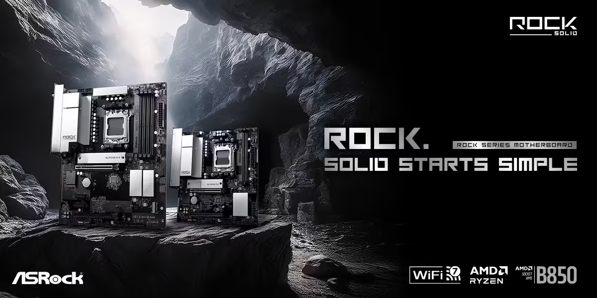 主板方面华擎将推出全新Rock系列。新增系列主板主打高性价比与现代简约设计,以务实的工程理念打造,提供稳定效能与高性价比,搭配实用、均衡的功能配置与利落现代的外观风格,新增B850/B860芯片组ATX/mATX主板。