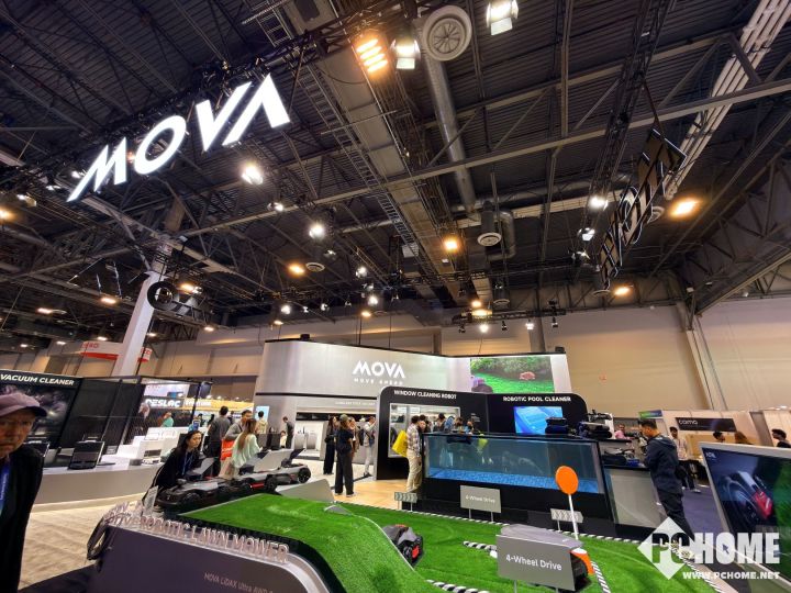 在MOVA展区,MOVA展示了19条产品线、4大新品类,带来了“水、陆、空”全场景生活解决方案。