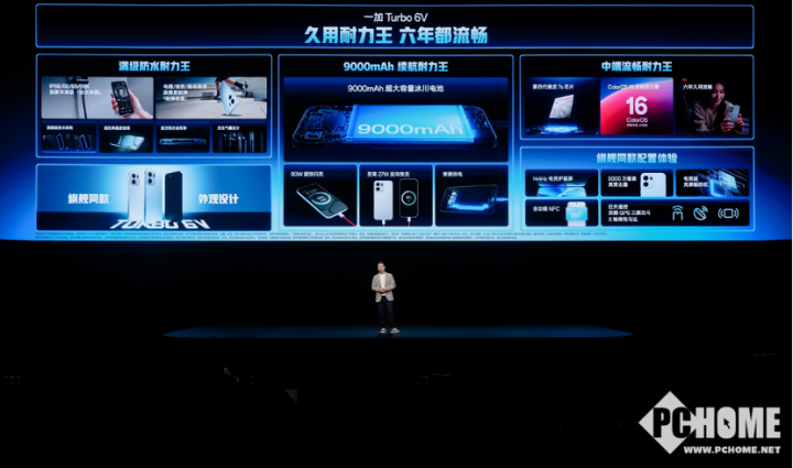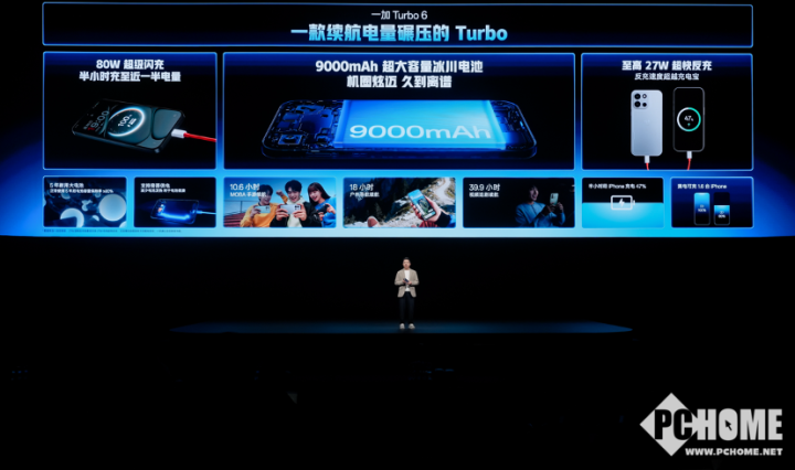 续航方面,一加 Turbo 6搭载9000mAh超巨量冰川电池,真正做到“出门一天不带充电宝”。该电池采用全新仿生球形硅碳负极材料,相比上一代类球形硅碳,电量循环提升30%;结合双层涂布工艺与自研硅负极电池算法,在实现超长续航的同时,显著提升电池耐久性,实现五年健康使用。