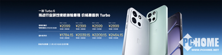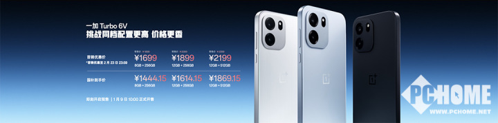 价格方面,一加 Turbo 6将于1月9日10:00全渠道正式开售,首销优惠价2099元起,国补到手价1784.15元起;一加 Turbo 6V将于1月9日10:00全渠道正式开售,首销优惠价1699元起,国补到手价1444.15元起。