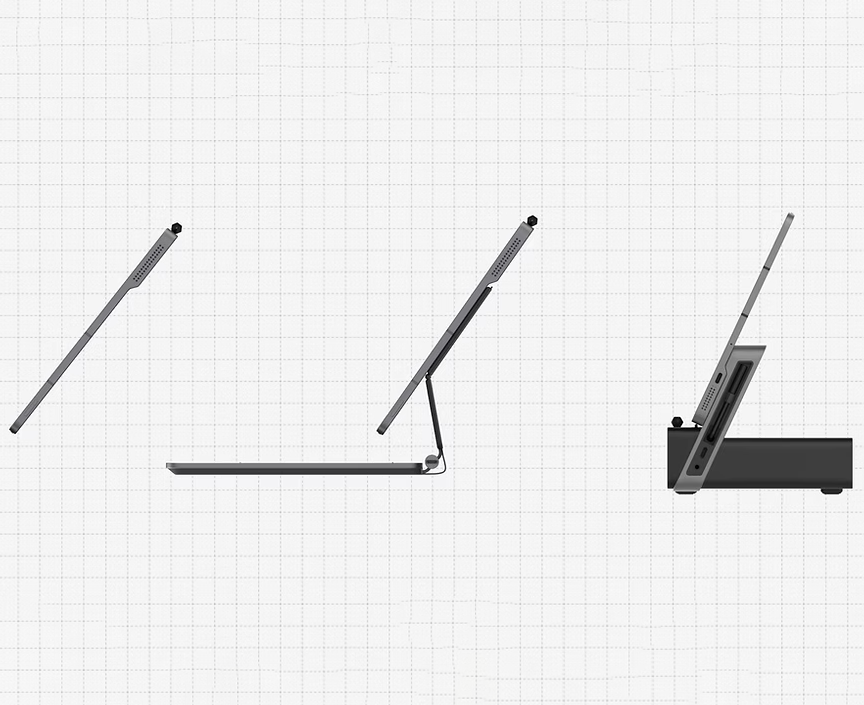 带屏迷你主机形态则需平板与Mind Go Stand扩展坞配对实现。扩展坞不仅扩充了丰富的I/O接口,解决外接设备需求,更集成主动散热系统,能将性能释放强度提升至平板模式的2倍,轻松应对桌面级办公等需求场景。