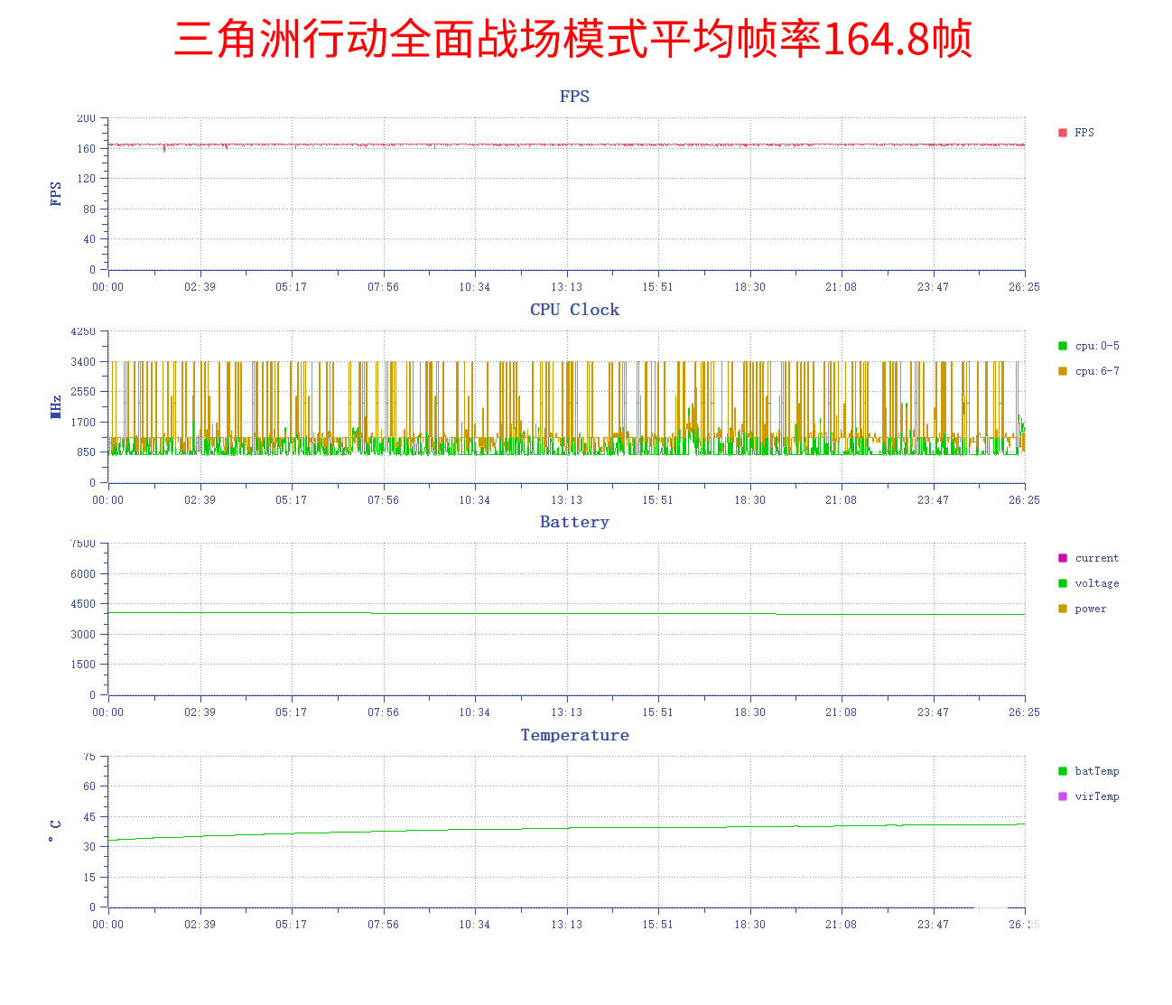 在《三角洲行动》精致画质 + 原生 165 帧设置下,进行大场面全面战场攻防模式测试,一加 15 跑出 164.8 帧的稳定表现,帧率曲线平稳顺滑,仅在重新部署时出现短暂游戏内帧率调整,其余时段均稳定在 165 帧左右,波动极小;发热控制同样出色,一局游戏结束后最高温度不超过 41℃。