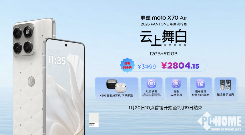 1月20日,联想在“有AI更Pro”新品发布直播活动中,正式推出联想moto X70 Air Pro AI手机,该机有着极致轻薄机身,并在影像、AI、性能方面得到了兼顾。并同步推出了联想moto X70 Air云上舞白冰钻限定版,该机采用潘通 2026 年度代表色设计,主打高定设计美学。