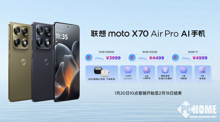 1月20日,联想在“有AI更Pro”新品发布直播活动中,正式推出联想moto X70 Air Pro AI手机,该机有着极致轻薄机身,并在影像、AI、性能方面得到了兼顾。