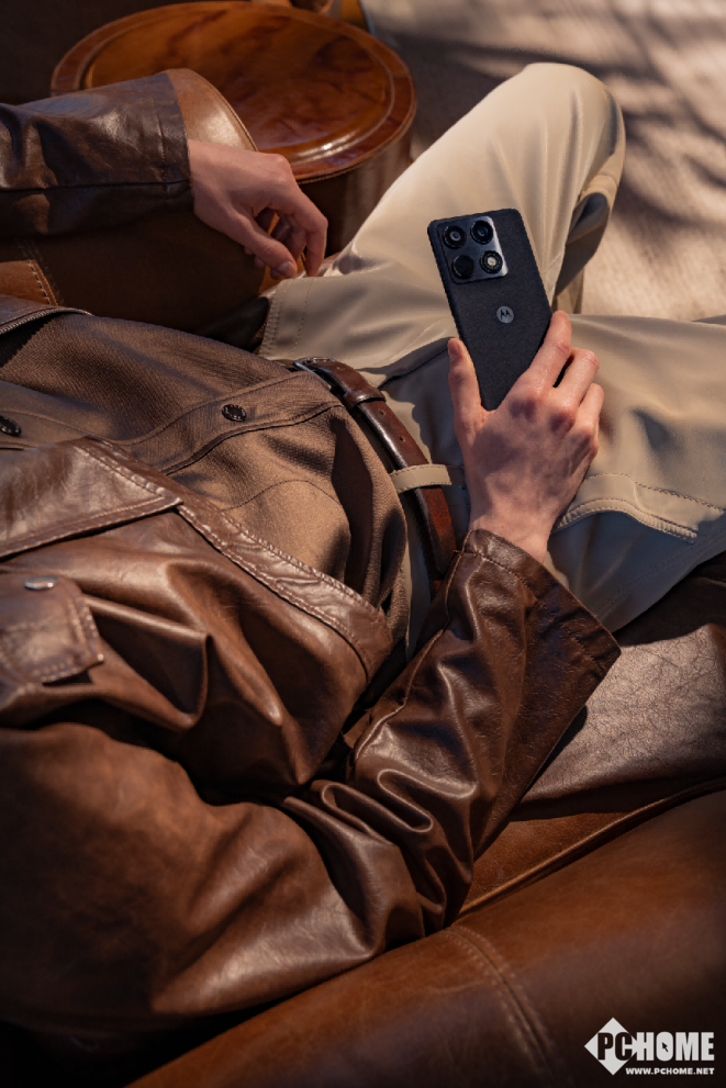 联想moto X70 Air Pro机身厚度6.99mm,重量186克,背盖采用双色叠层PU材质,融合西装纹理与斜纹织构,兼具细腻触感与防滑耐污性。中框为5.25毫米超薄航空铝合金材质,经金属拉丝工艺处理,平衡纤薄与机身强度。