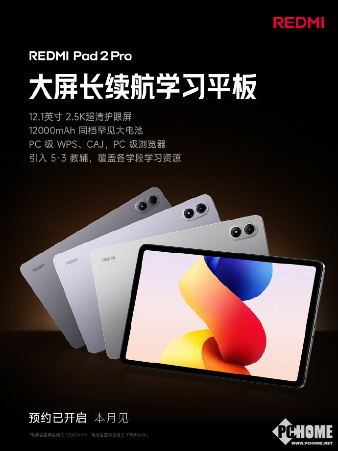 此外,REDMI Pad 2 Pro在续航方面升级,搭载12000mAh超大容量电池,可以说是目前同档最大电池了。支持69天超长待机、至高27W有线反充,能给手机高效补电。