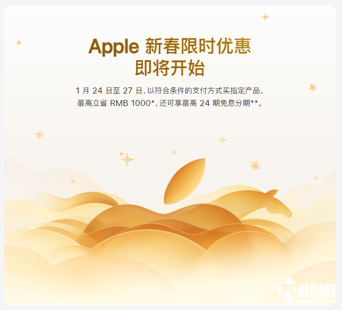 据苹果官网活动页面显示,本次新春限时优惠的时间范围为2026年1月24日至2026年1月27日,但提供的优惠数量十分有限,活动页面明确标注,Apple Store零售店内可参与本次优惠的iPhone类商品数量仅为850件。
