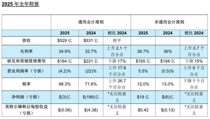 总体来看,2025年财报显示英特尔在营收规模保持稳定的同时,正在通过AI相关业务增长、先进制程量产与组织效率提升,为2026年的业务推进与结构性改善奠定基础。
