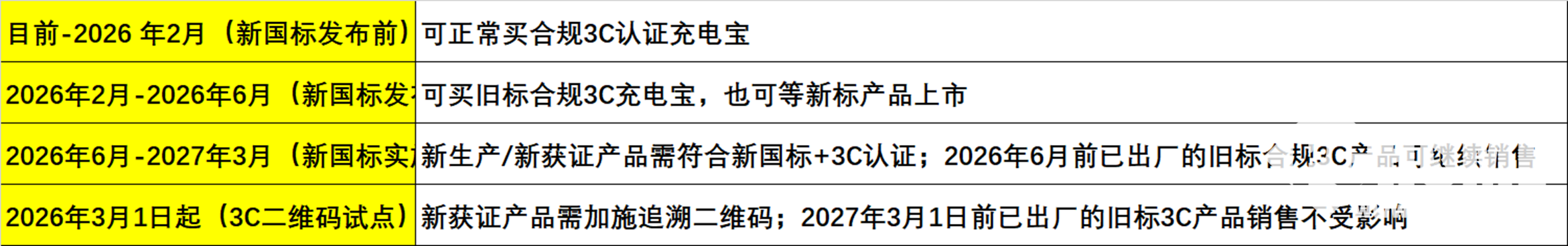 2026年6月后新生产的产品需符合新国标,但2026年6月前已售的合规3C充电宝可正常使用,不受新标实施影响。