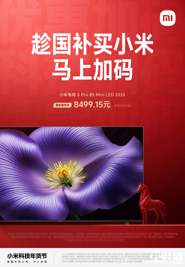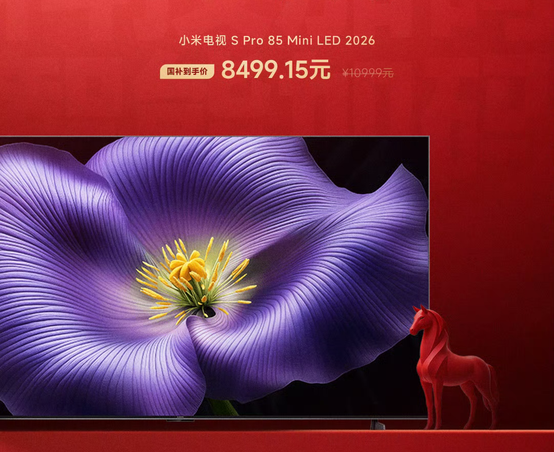 1月25号消息,小米科技年货节正在进行中,多款小米家电都有优惠,其中小米电视S Pro 85 Mini LED 2026国补到手价8499.15元。
