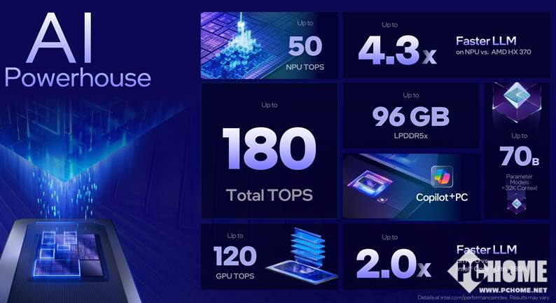 对于AI PC来说,AI算力是实现应用的基础。Panther lake集合了CPU、GPU和NPU的强大算力,独立NPU算力达到50TOPS,达到Windows 11 AIPC+标准,总算力高达180TOPS,结合英特尔持续投入的AI软件生态,共同释放本地AI能力。