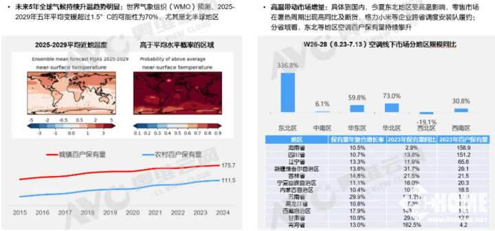 奥维云网表示,2025年全球变暖趋势持续,以往百户保有量极低的北方地区及下沉市场空调渗透率显著提升,被视为“非刚需”区域的空调消费潜力被激活。数据显示,夏季高温周期内,天气因素直接带动东北市场增量翻三倍,当地出现空调断货、干线物流大仓阻塞、送装排期调度迟缓等一系列情况。